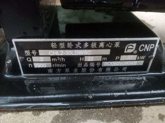 南方泵業CHL16-20LSWSR 臥式多級離心泵,LSWSR是表示泵的配置是:L內螺紋接口,S三相380V電壓,W50hz,S304材質,R熱水型。橫向進水,縱向出水,進出口口徑都為2寸(也就是50管)