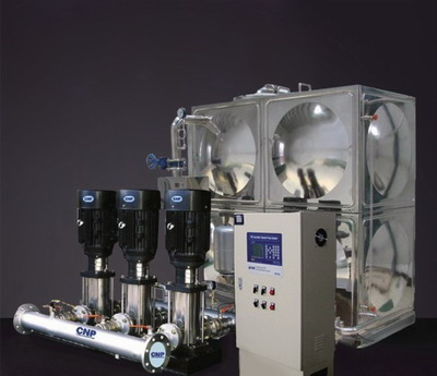 箱式管網疊壓變頻供水設備是一體化供水設備,可直接從自來水管網取水,疊壓供水,利用兩路進水對設備進水進行穩壓調節,差量補償,從而達到恒壓供水節能的目的。主要是由密封水箱、增壓設備、穩流罐、電控柜及泵組組成。