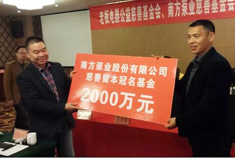 南方泵業斥資2000萬元成立慈善留本冠名基金