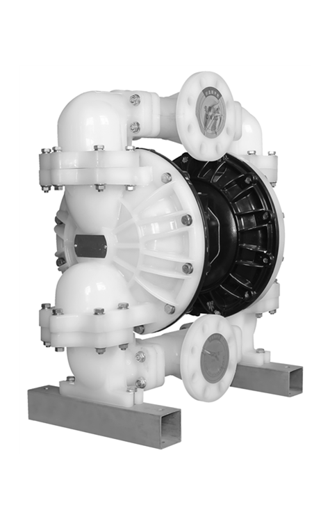 2、機械驅動隔膜,物料側無隔膜護盤,便于物料通過,PP、PVDF、316SS等多種泵頭材質可選,自清洗單向閥結構。