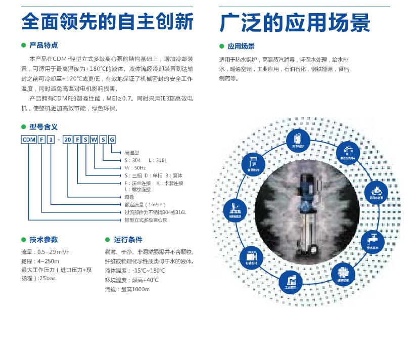 南方離心泵 南方高溫型CDMF輕型立式多級離心泵 高溫泵在CDMF輕型立式多級離心泵的結構基礎上,增加冷卻裝置,可適用于最高溫度為+180攝氏度的液體。液體流經冷卻裝置到達軸封之前可冷卻至+120℃或更低,有效地保證了機械密封的安全工作溫度,同時避免高溫對電機影響損害。 性能參數 標簽 產品介紹 相關產品 南方LLT,LLTS立式冷卻塔專用泵 南方XC系列電動潤滑泵 南方泵業CDL/CDLF12系列機械密封/… 南方GM0330PQ1MNN計量泵油封 南方ZW型無堵塞自吸式排污泵 南方SZ氟塑料離心泵